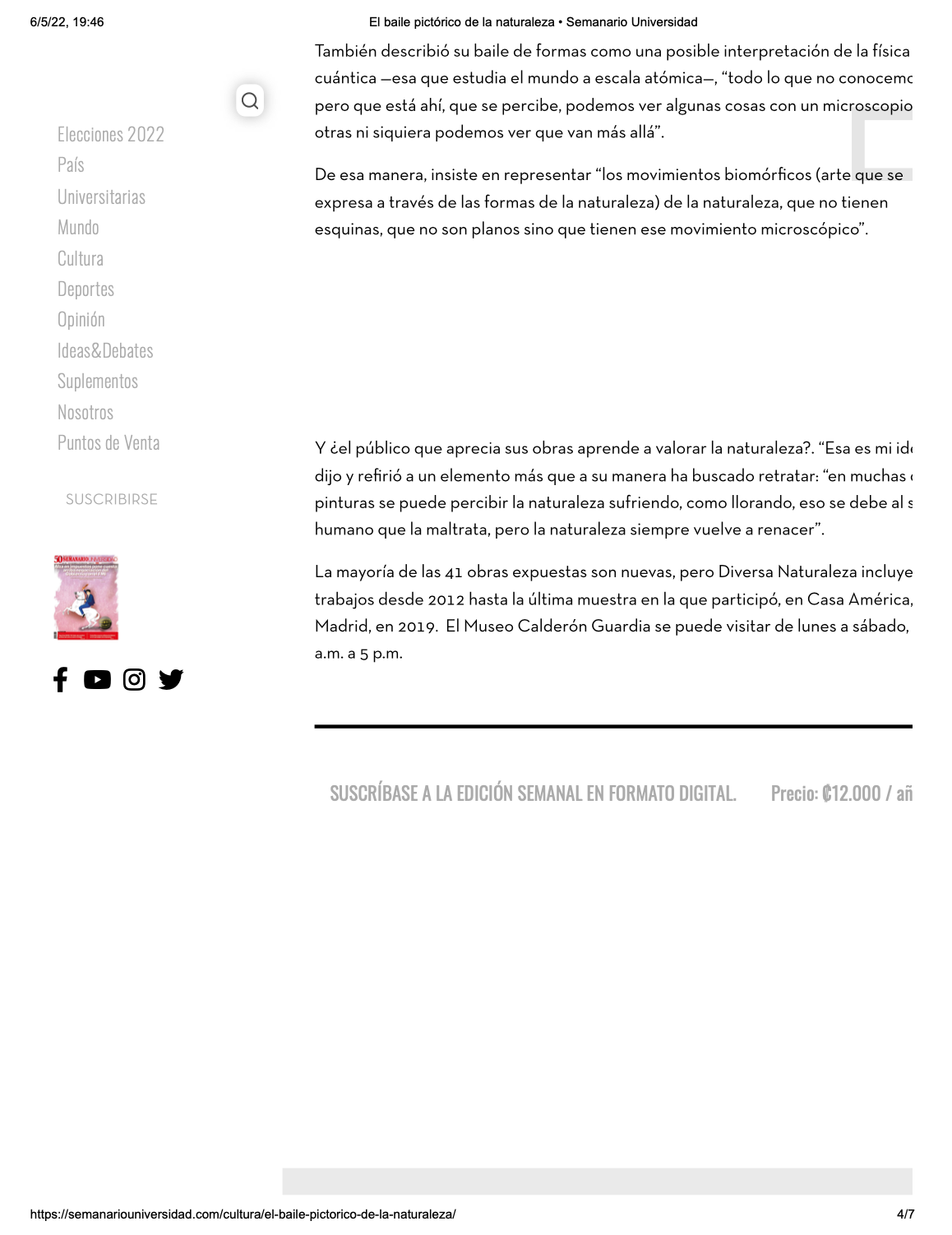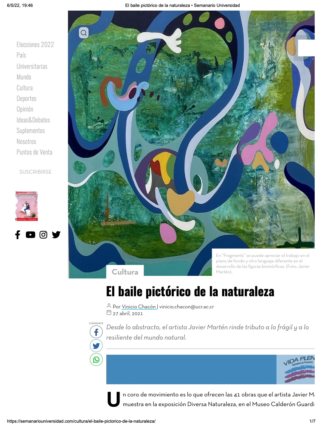 Semanario Universidad - El baile pictórico de la naturaleza. 12 Mar Written By Javier Marten Javier Marten