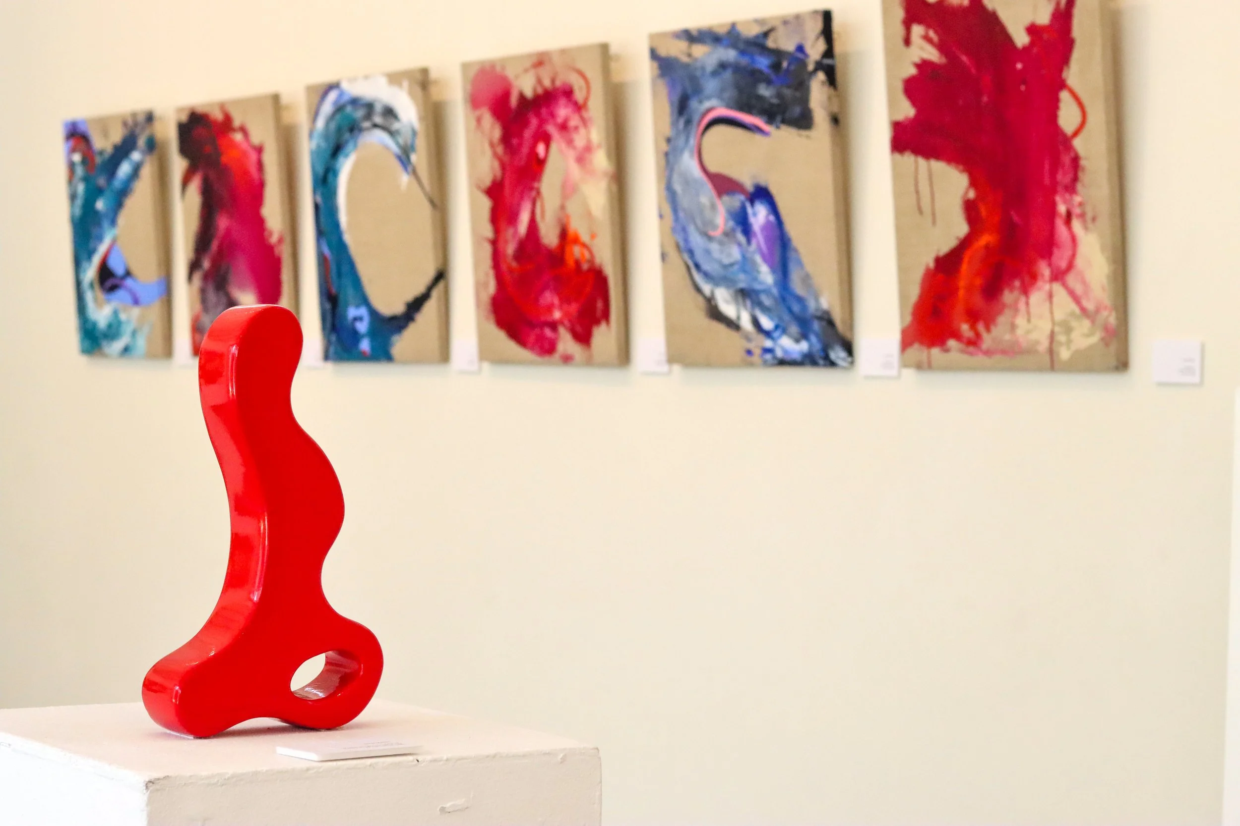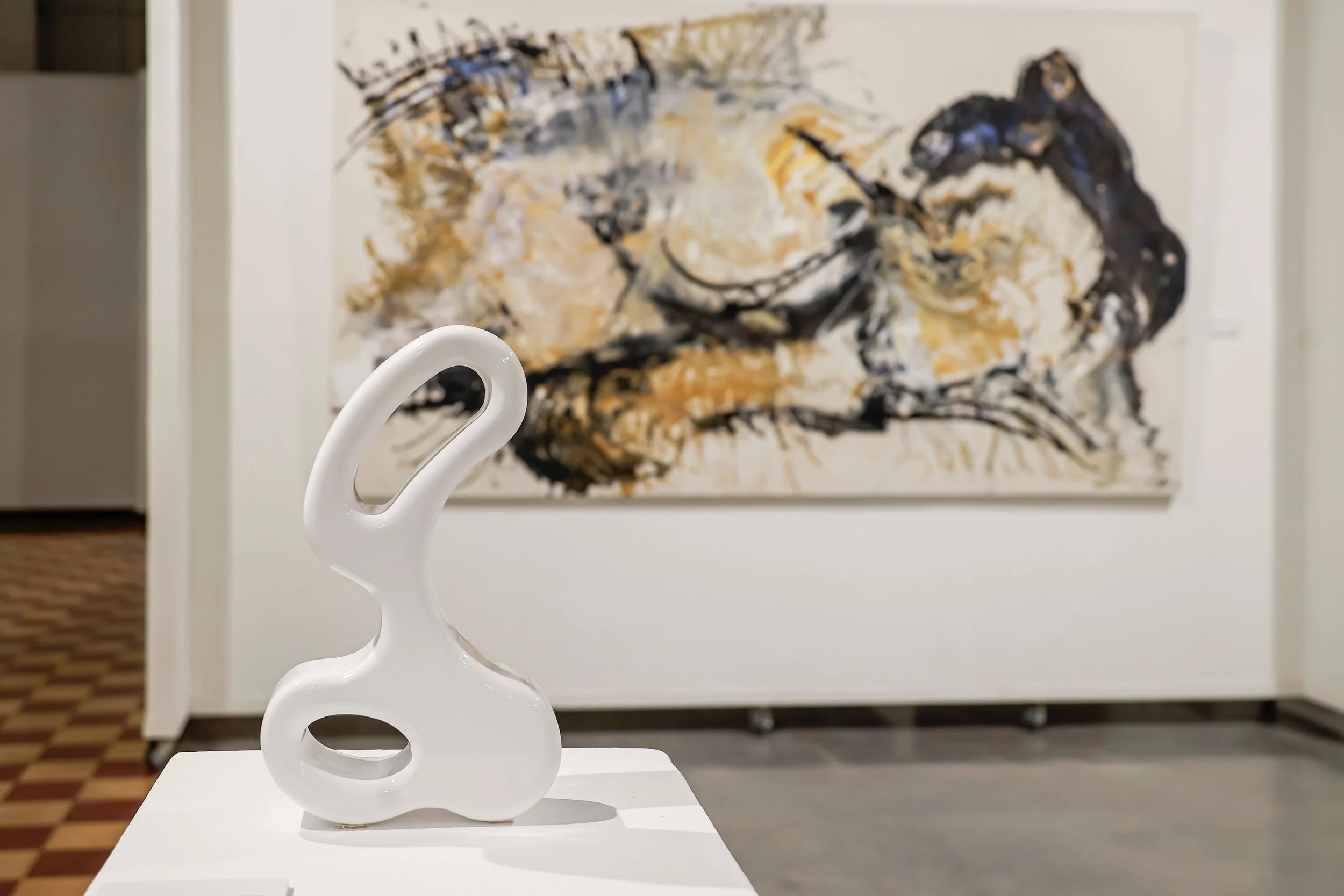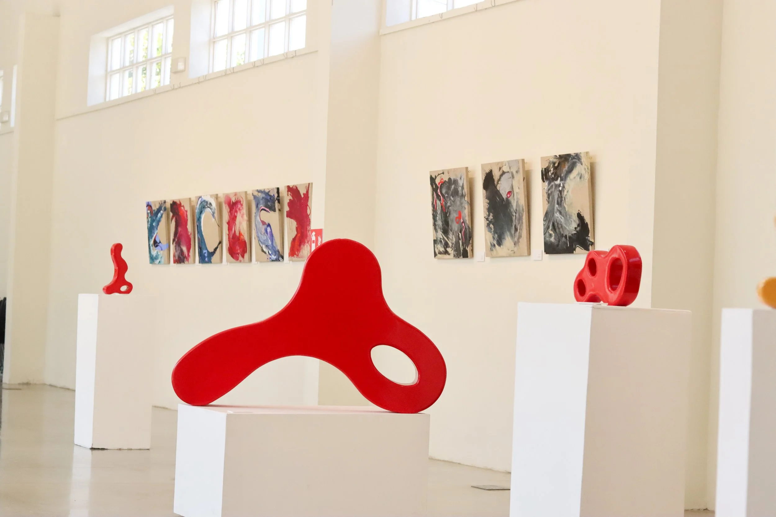 In his recent sculpture series titled “Entes”, Martén explores three-dimensionality by abstracting elements from his own paintings, capturing their essence in sculptural forms. He uses materials such as oak wood, resin, and bronze to create pieces of various sizes and colors, achieving a harmonious fusion between the organic and the abstract. These sculptures reflect his interest in translating the shapes and movements of his paintings into the three-dimensional space, offering a new perspective on his artistic language.