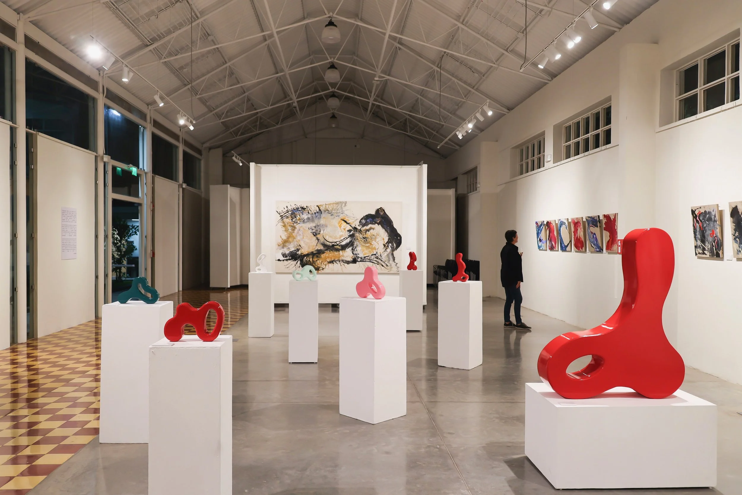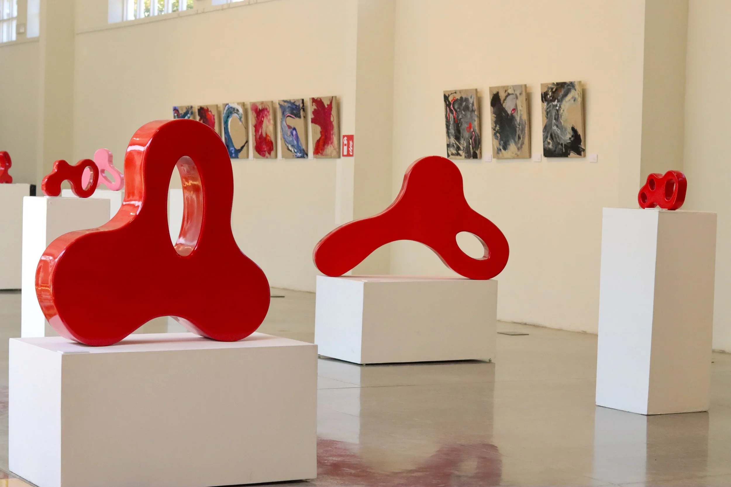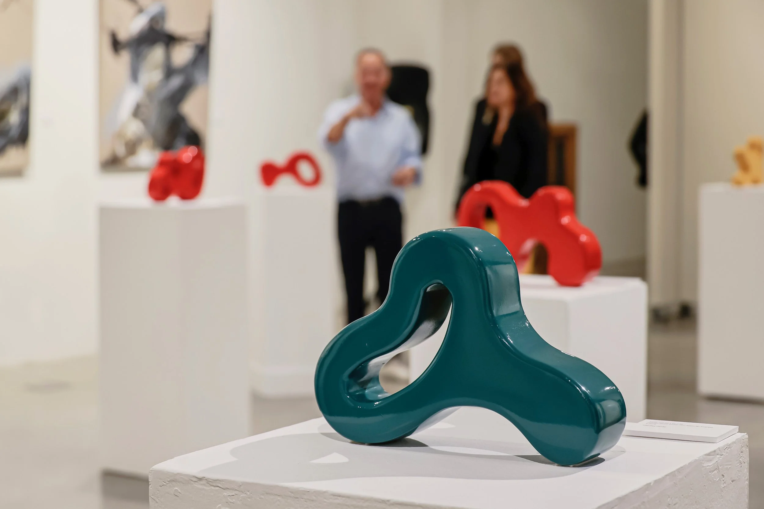 In his recent sculpture series titled “Entes”, Martén explores three-dimensionality by abstracting elements from his own paintings, capturing their essence in sculptural forms. He uses materials such as oak wood, resin, and bronze to create pieces of various sizes and colors, achieving a harmonious fusion between the organic and the abstract. These sculptures reflect his interest in translating the shapes and movements of his paintings into the three-dimensional space, offering a new perspective on his artistic language.